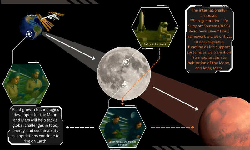 A global consortium of more than 40 scientists from 11 countries and seven space agencies has developed a new roadmap for the plant science and technology breakthroughs needed to make long-term human life on the Moon, and later Mars, possible.