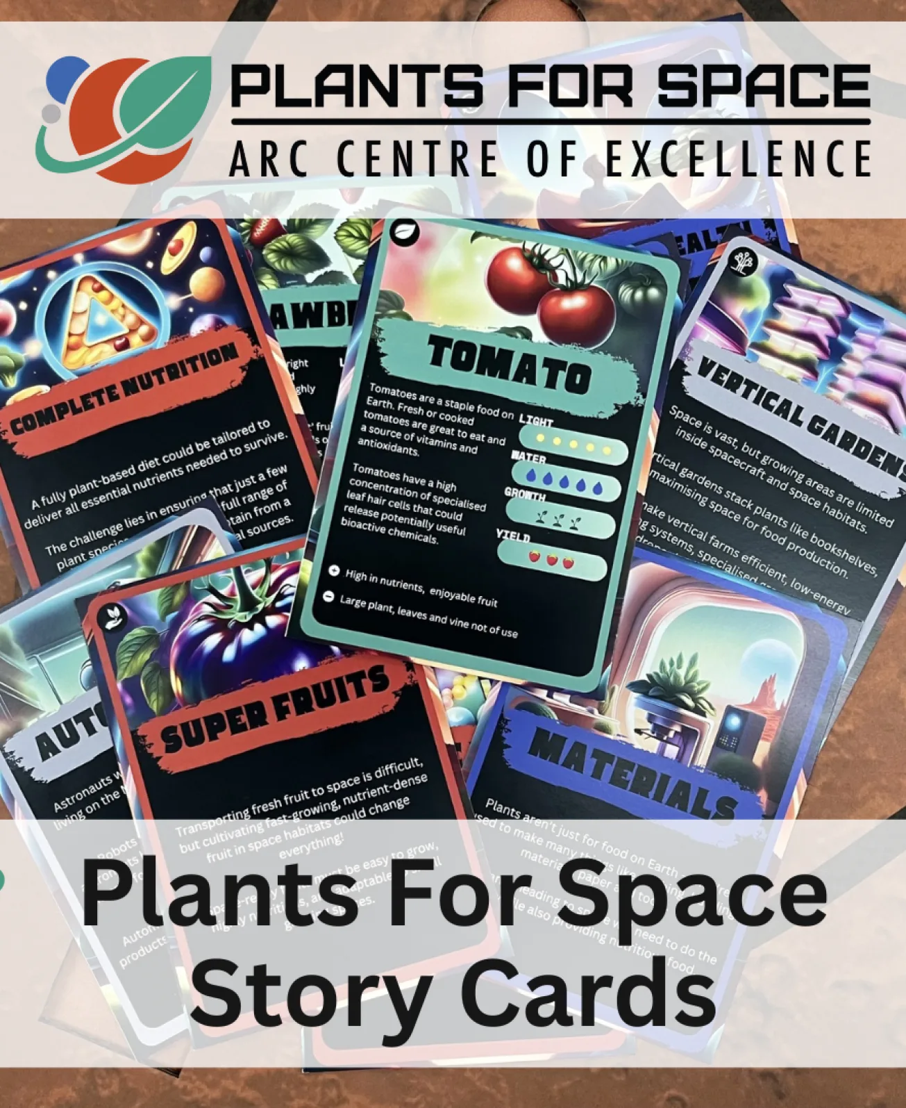 Plants for Space Story Cards are used to highlight the challenges and solutions to growing plants off Earth in the near future including, the science needed to achieve success, the people working on the solutions and the benefits for Earth that the centre of excellence will achieve. Students will expand their understanding of the interdisciplinary sciences needed to re-imagine the way plants are grown, what they produce and what can be made from them.